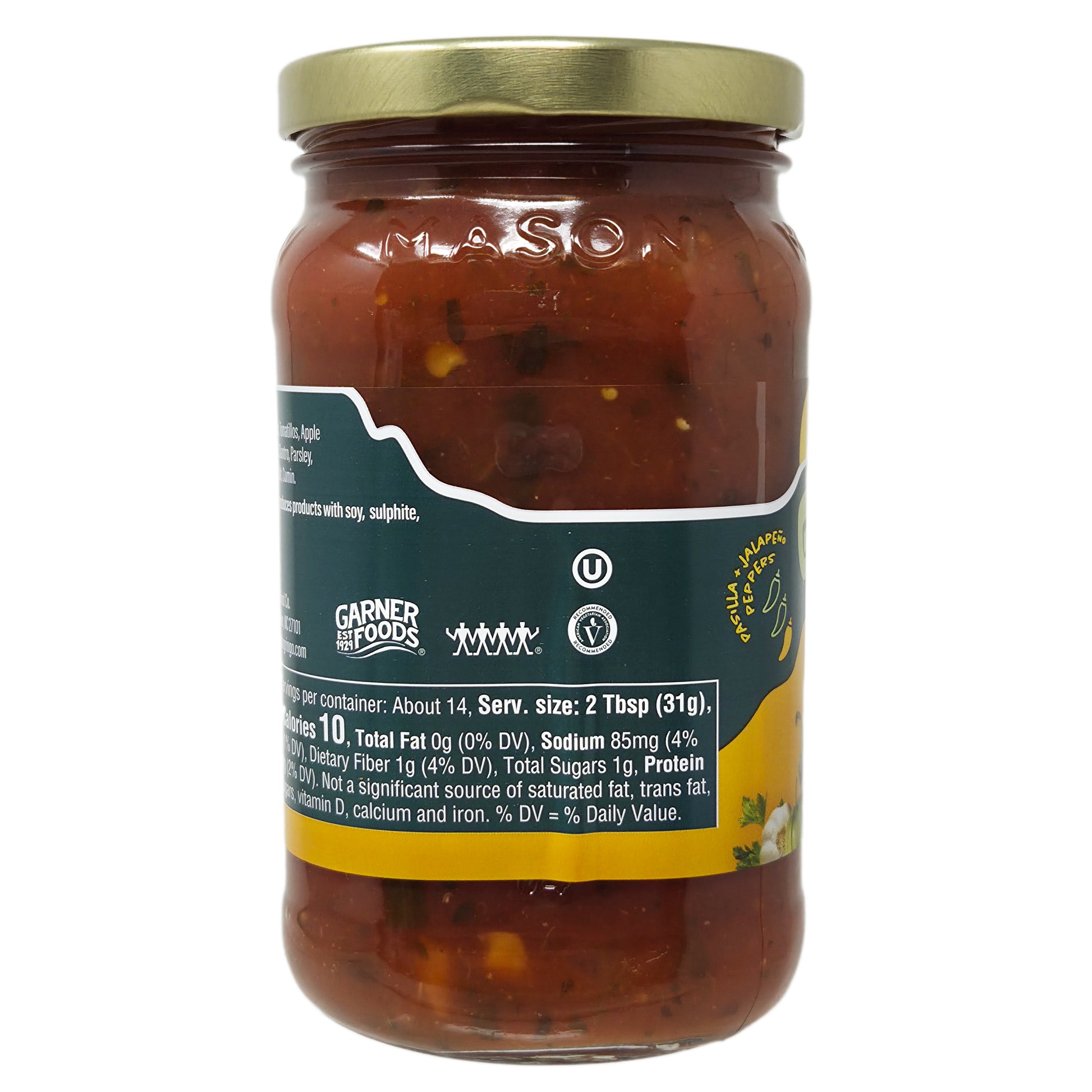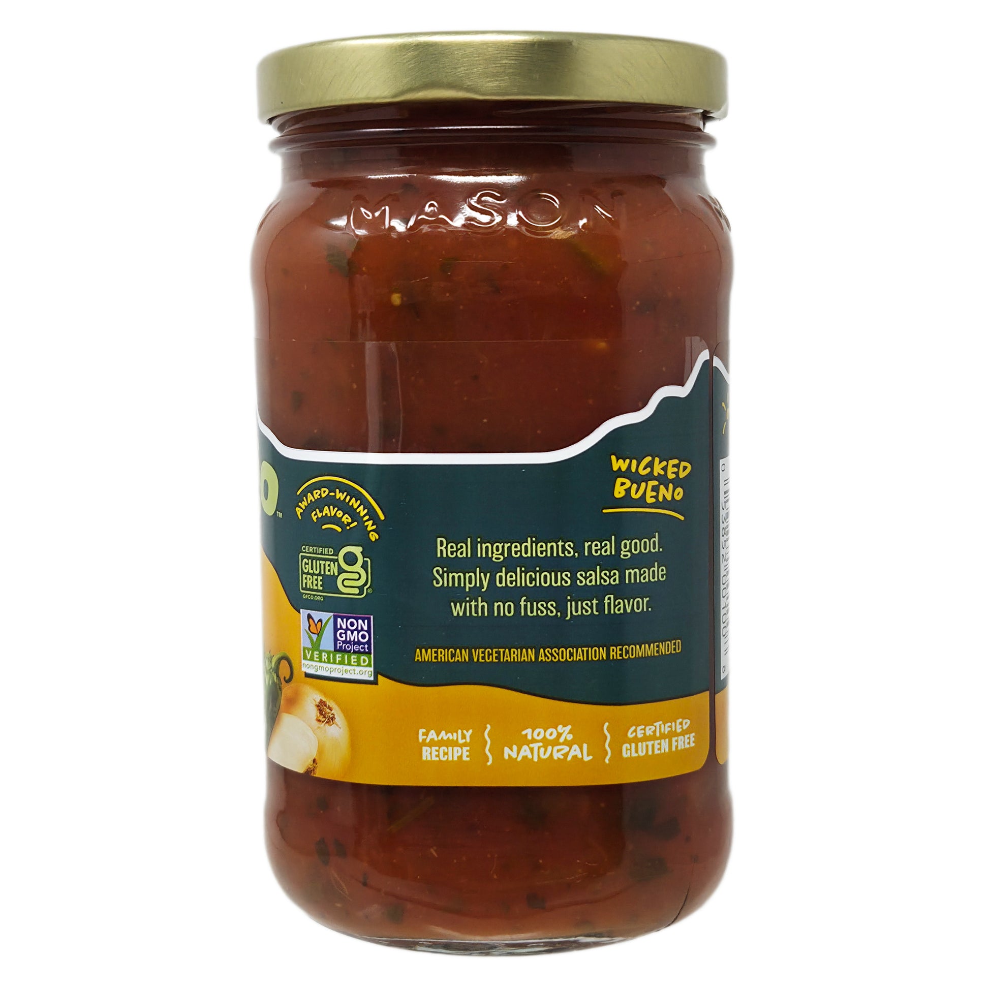 Real ingredients, real good. Simply delicious salsa made with no fuss, just flavor. 100% natural, family recipe, certified gluten free, non-GMO, and with award-winning flavor. Only 85mg of sodium per serving! American vegetarian association recommended