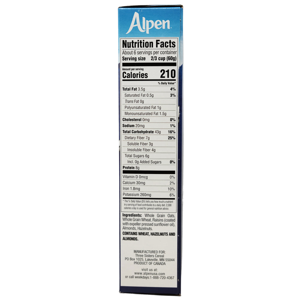Ingredients: Whole Grain Oats, Whole Grain Wheat, Raisins (coated with expeller pressed sunflower oil), Almonds, Hazelnuts.