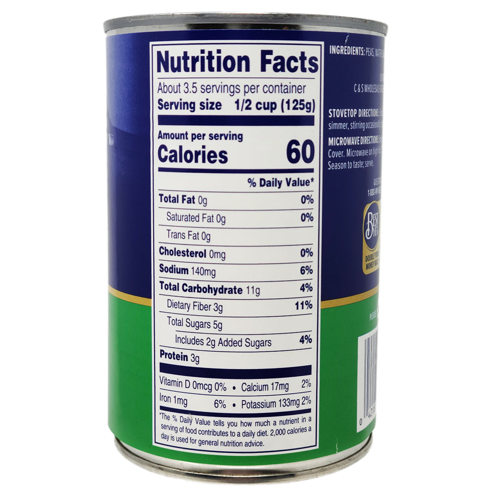 Ingredients: Peas, Water, Sugar, Salt.
