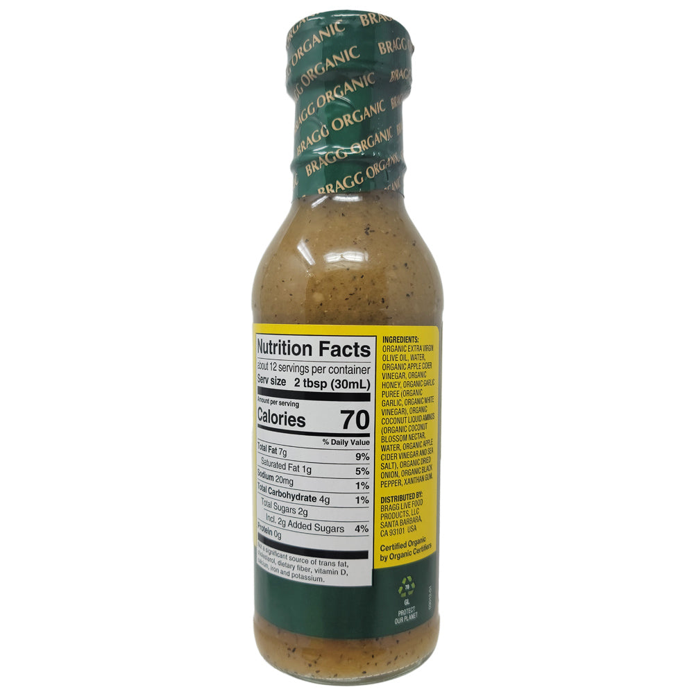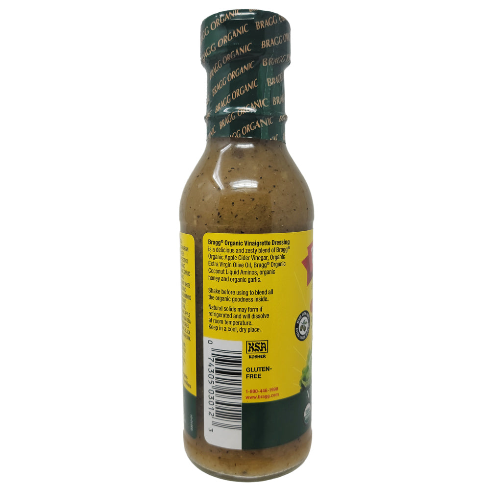 Bragg Organic Vinaigrette Dressing is a delicious and zesty blend of Bragg Organic Apple Cider Vinegar, Organic Extra Virgin Olive Oil, Bragg Organic Coconut Liquid Aminos, Organic Honey and Organic Garlic