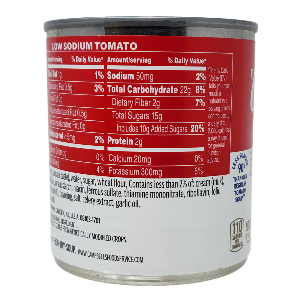 You know Campbell's...it is mmm-mmm good! Now available is a low sodium tomato soup that is perfect for sodium restricted diets. In a ready to serve can, this is a quick and convenient meal with only 50mg of sodium per CAN.