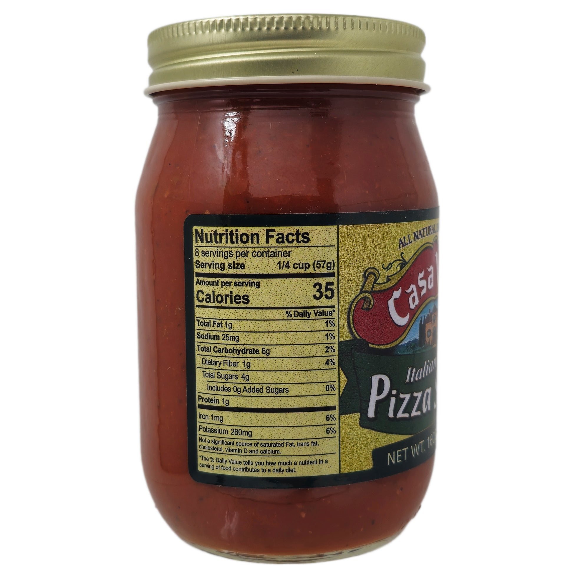 Casa Visco Italian Style Pizza Sauce is made with non-GMO, all natural ingredients with no added sugar and gluten free! Only 25mg of sodium per 1/4 cup.