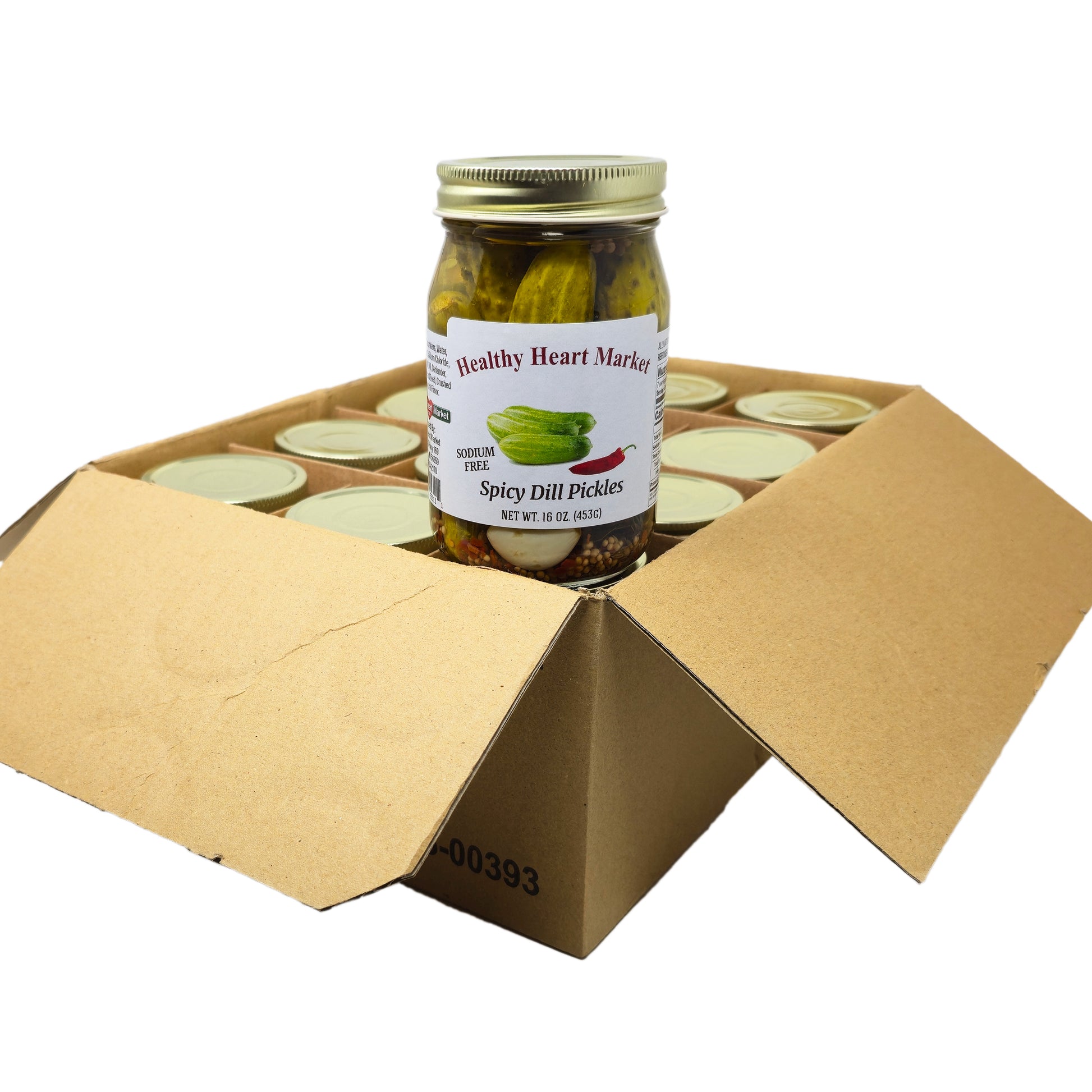 Case of 12 Healthy Heart Market Sodium Free Spicy Dill Pickles- 16oz.