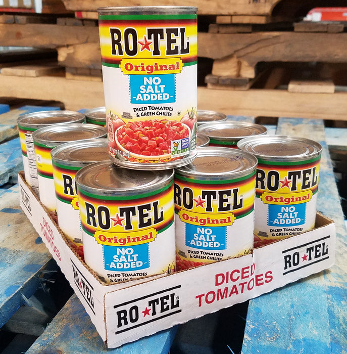 CASE OF 12 - New Ro-Tel Original Diced Tomatoes with Green Chilies. A delicious no salt added tomato to add to any Mexican dish, dip, or chili. With only 15mg of sodium per serving!