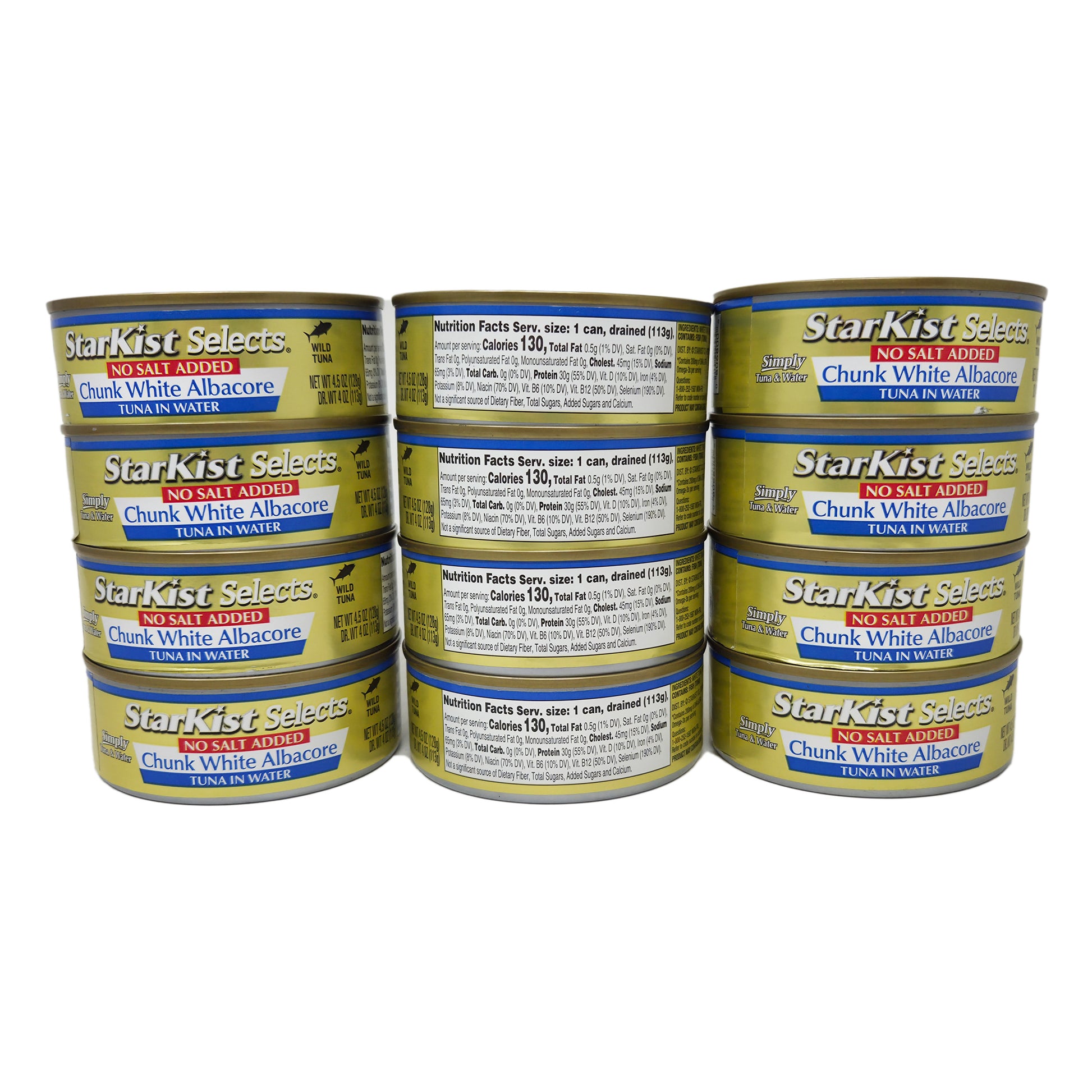 StarKist Selects No Salt Added Chunk White Albacore Tuna is wild caught and simply tuna and water! Gluten free, soy free, omega 3's, non-GMO, and only 65mg of sodium per can.