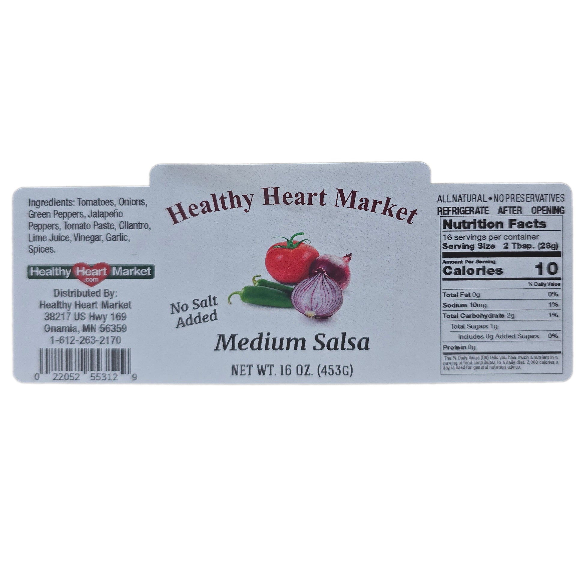 Introducing Healthy Heart Market's own No Salt Added MEDIUM Salsa! All Natural, no preservatives, and only 10mg of sodium per 2 Tablespoons. 160mg PER JAR!