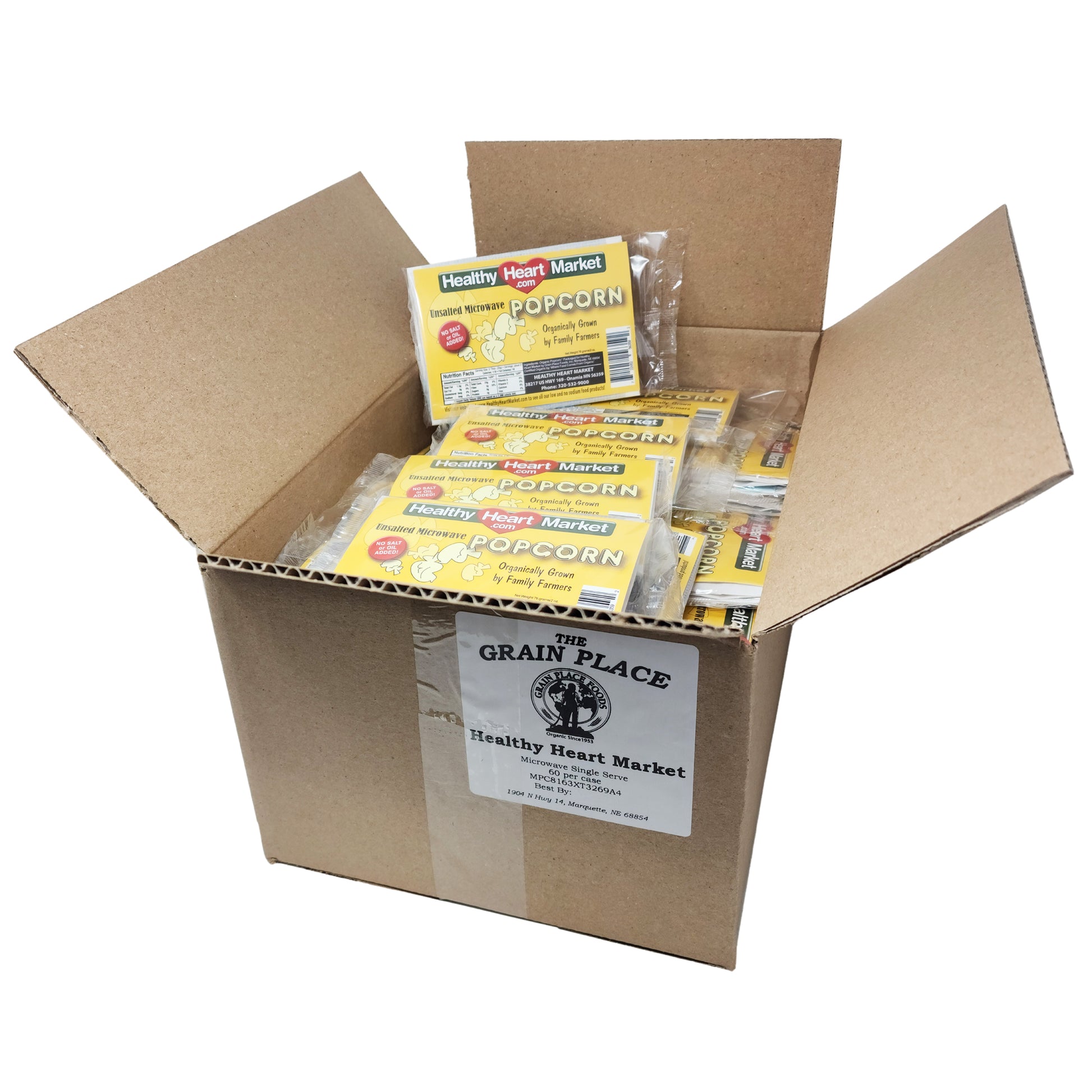The only place to get this popcorn is right here at Healthy Heart Market. No salt or oil added. A generous 2 ounce bag of certified organic microwave popcorn.