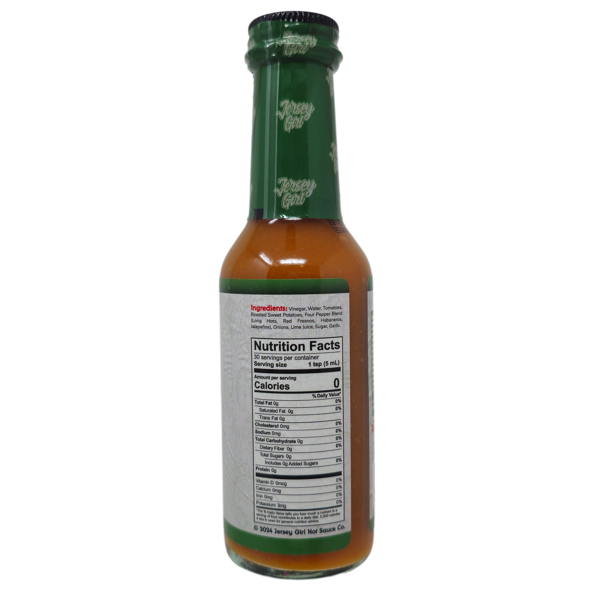 Embrace the robust sweetness of Jersey Girl Classic Sodium Free Hot Sauce! This is exquisite 4 pepper blend combined with roasted sweet potatoes and tomatoes will deliver a fiery kick to any meal. Try this on eggs, soups, pizza, fish and wings, It will enhance the flavor of your meal while not ramping up you sodium intake because Jersey Girl is Sodium Free. Keep you health in check and taste the adventure because with jersey Girl in the Driver's seat, the possibilities are endless.