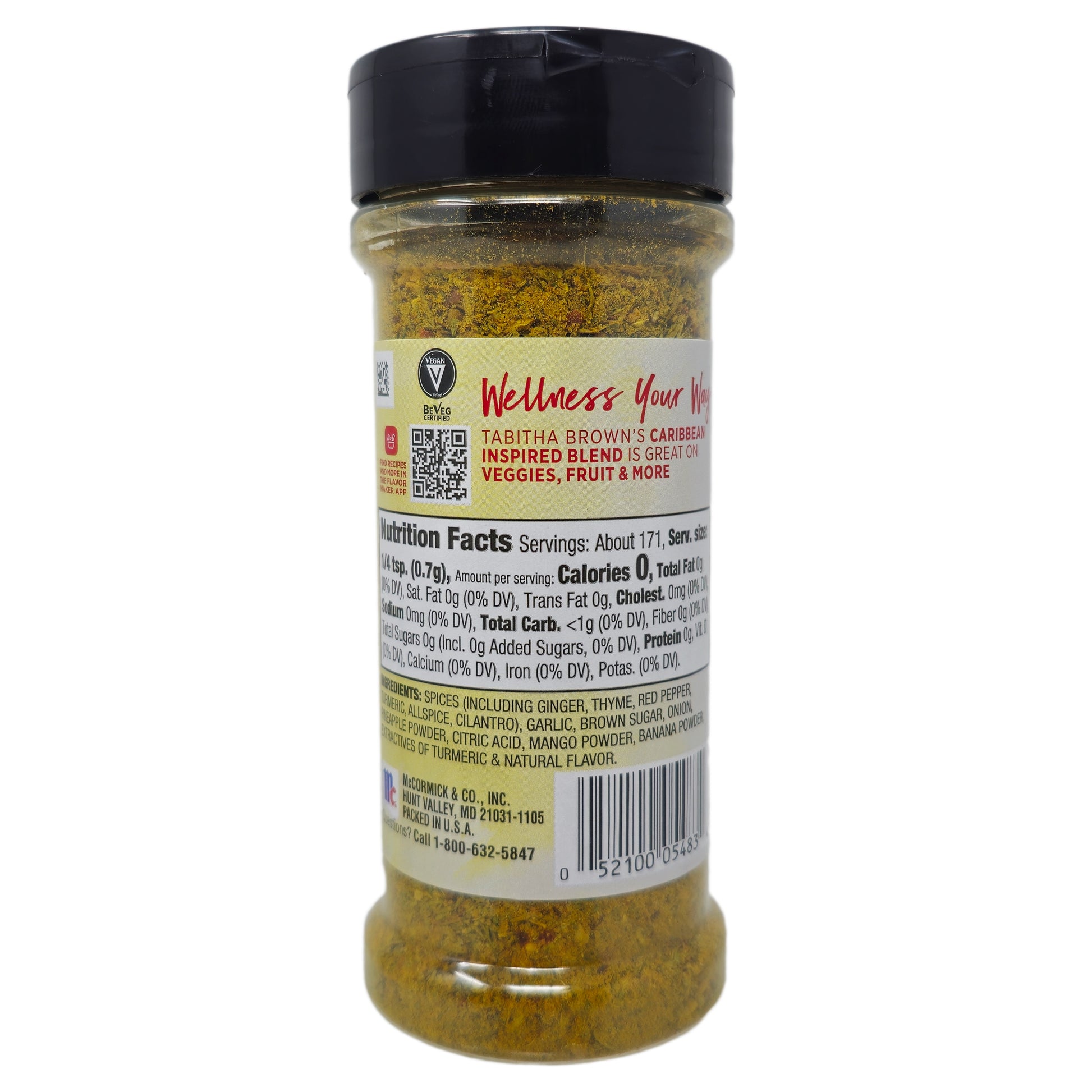 Wellness Your Way! Tabitha Brown's Caribbean inspired blend is great on veggies, fruit & more! McCormick Salt Free Sunshine All Purpose Seasoning has hints of garlic, ginger, pineapple & mango and vegan.