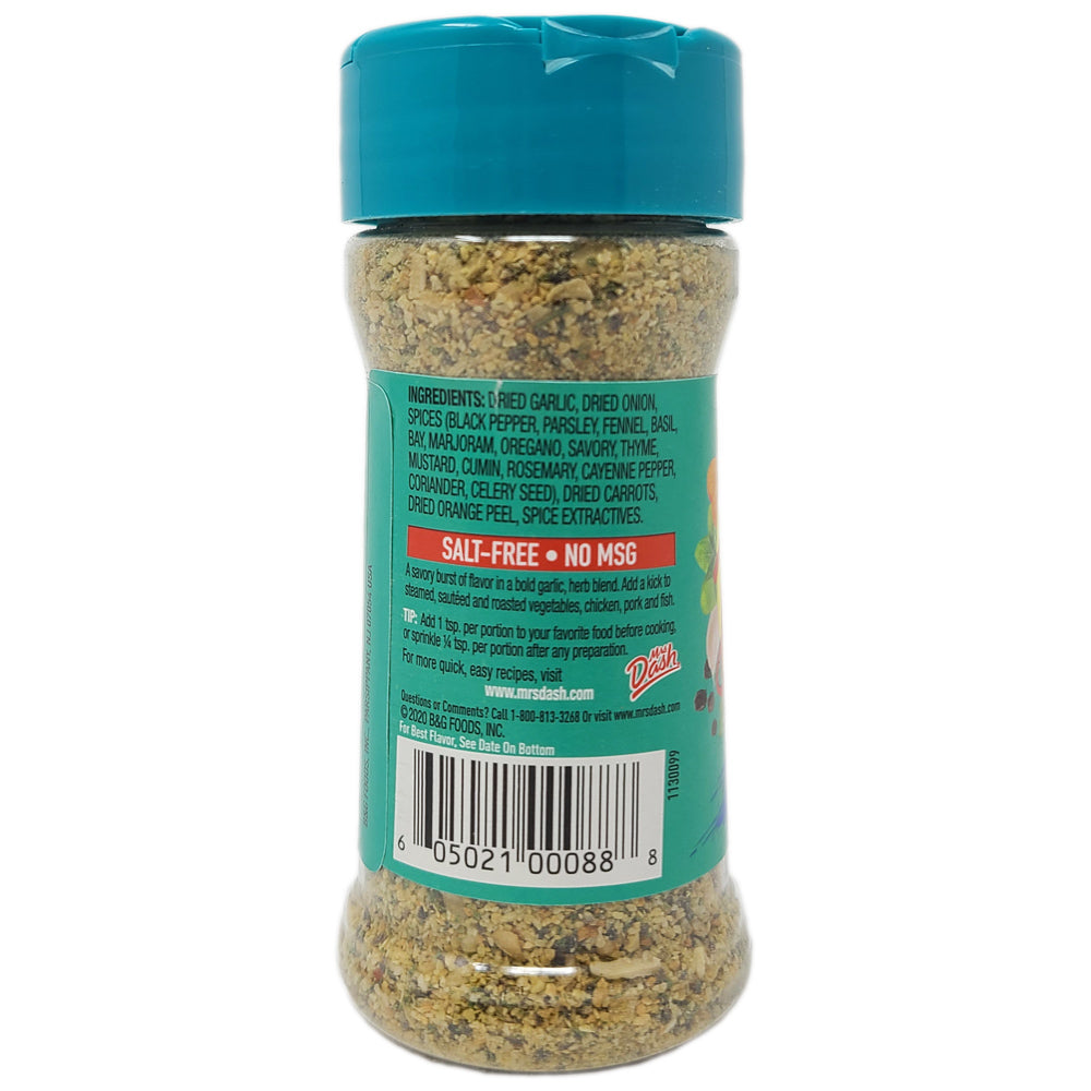 Add flavor and excitement to poultry, beef, pasta and more with Mrs. Dash's savory blend of zesty garlic mixed with herbs and spices, including oregano, parsley, and freshly ground black pepper.