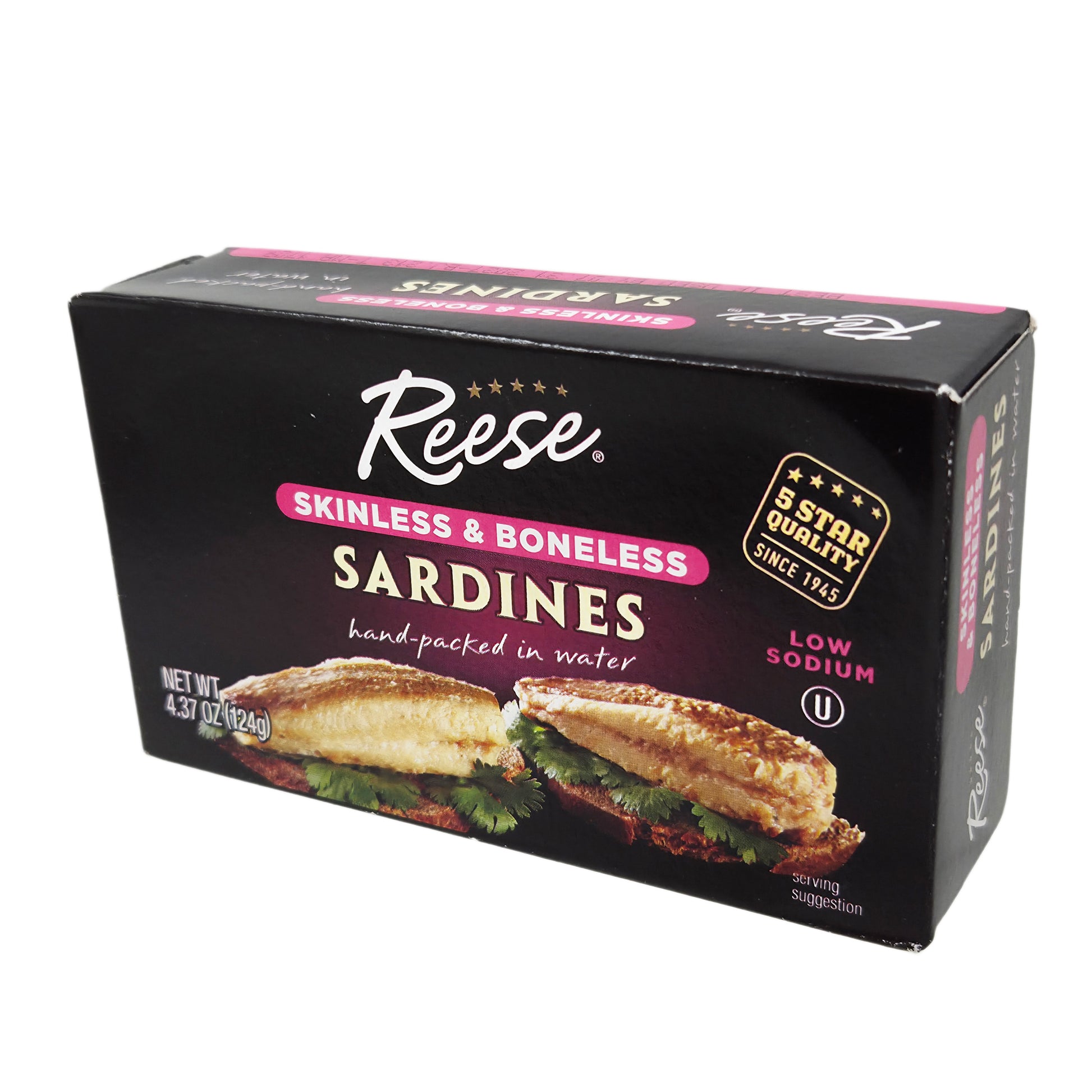 Reese Skinless & Boneless Low Sodium Sardines are hand packed in water in an easy open can! With only 75mg of sodium per can!