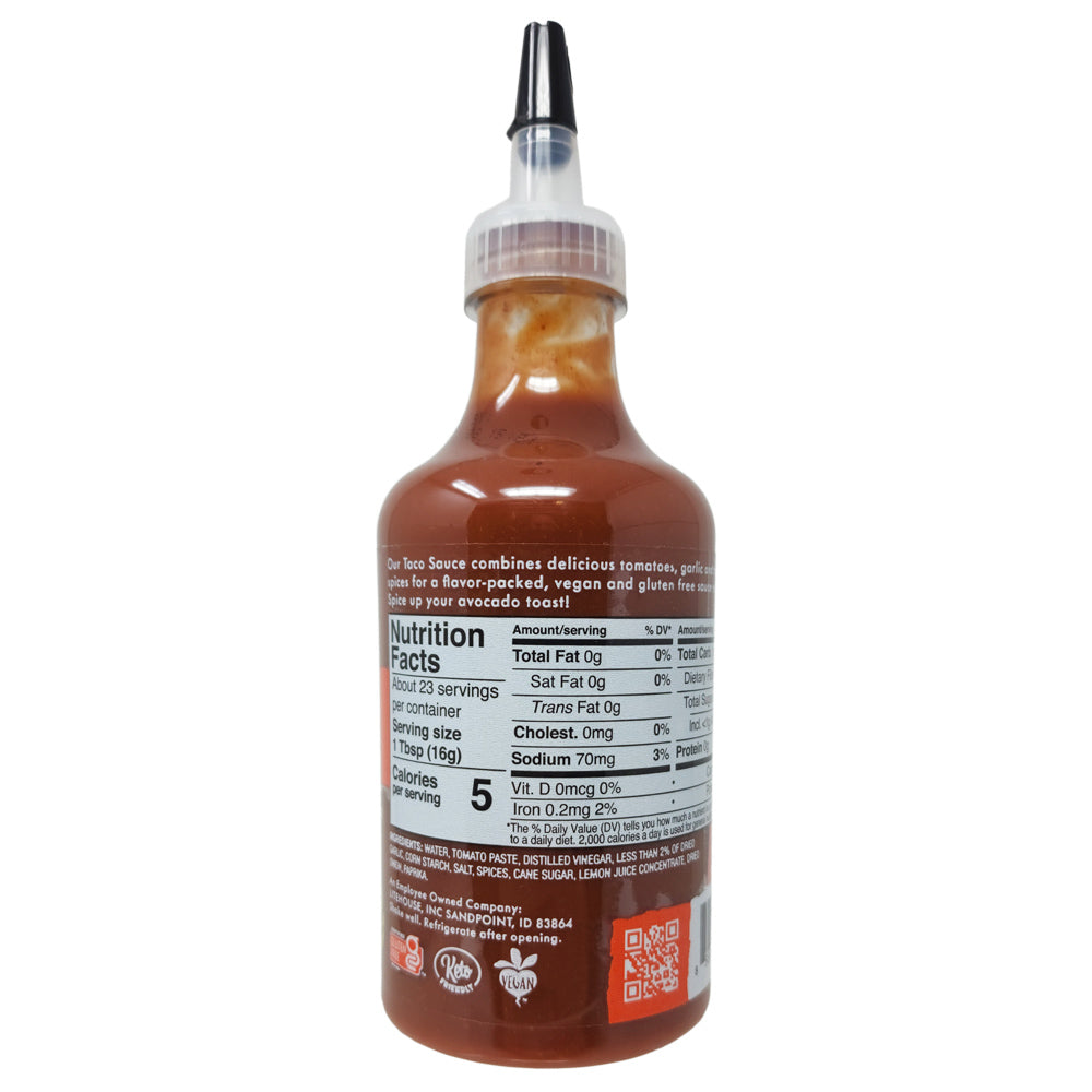 Sky Valley Taco Sauce combines delicious tomatoes, garlic, and traditional spices for a flavor-packed, vegan and gluten free sauce you'll love. This is a medium heat sauce. Non-GMO, gluten free, plant based, Keto friendly, and vegan!