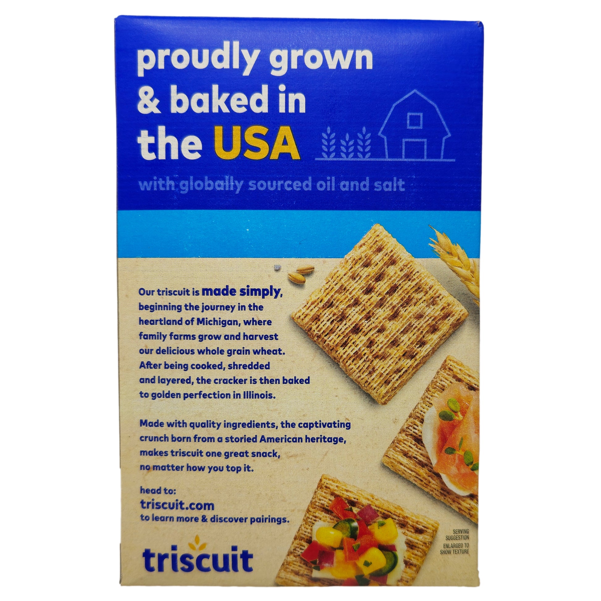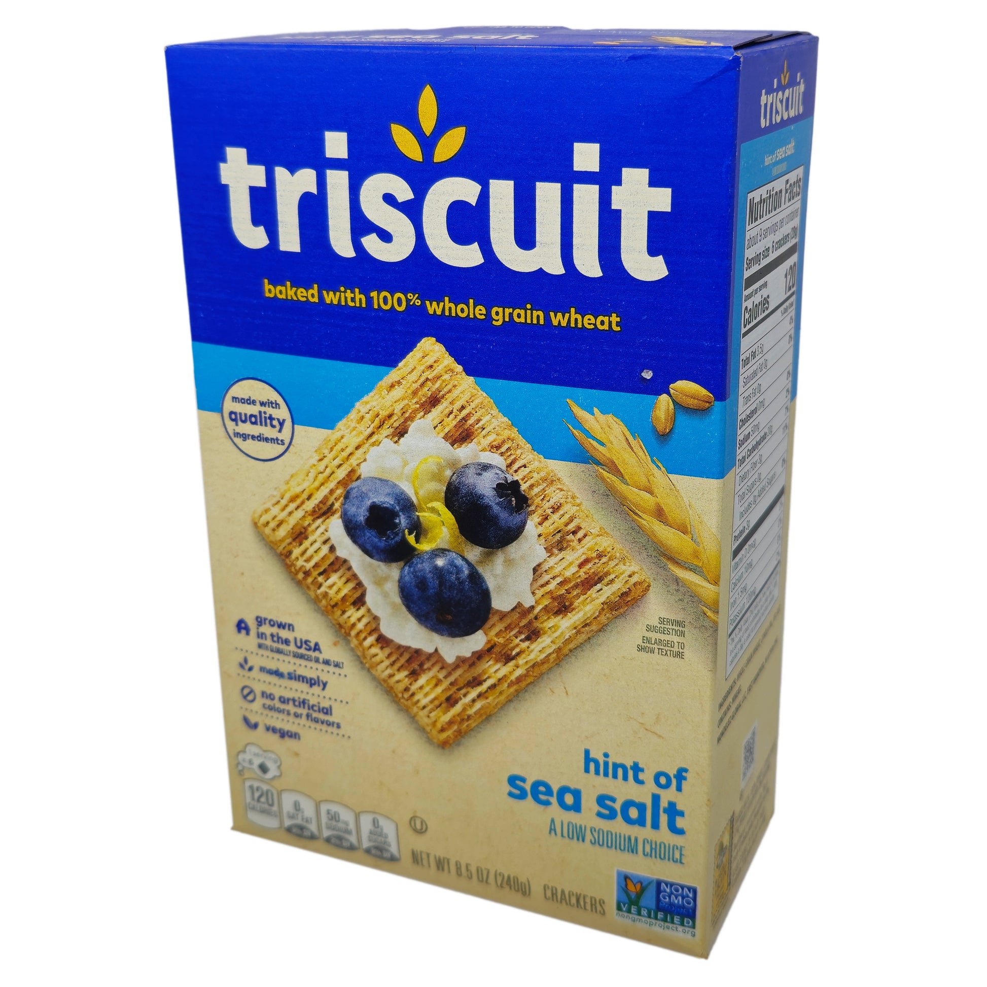 Triscuit crackers are a snack that is deliciously wholesome. Made with 100% whole grain wheat, oil, and a hint of sea salt, all baked into a delicious woven cracker. Pair Triscuit a Hint of Salt crackers with your favorite toppings to add more flavor and fun! With only 50mg of sodium per serving.